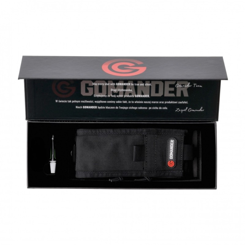 Tłumik do broni myśliwskiej Gomander Hunter 8.0 OB Generacji II to skuteczne urządzenie wytłumiające dźwięk strzału, mocowanie bezpośrednio na lufie (Over Barrel). Stworzony został specjalnie do współpracy z bronią myśliwską, gdzie ogranicza płoszenie zwierzyny. Tłumik wykonano z lekkiego aluminium lotniczego, co przekłada się na niską masę oraz dobre przewodnictwo cieplne (szybsze schładzanie). Dodatkowe pokrycie powierzchni tłumika powłoką ochronną Cerakote zapewnia zabezpieczenie przed niekorzystnym wpływem kwaśnego środowiska tworzonego przez resztki prochu. Najważniejszym jest w konstrukcji system redukujący powracanie gazów prochowych z powrotem do komory nabojowej oraz w stronę strzelca. Tłumik jest też dzięki temu łatwy w czyszczeniu. Model jest w kolorze czarnym i dostosowany jest do gwintu 15x1.