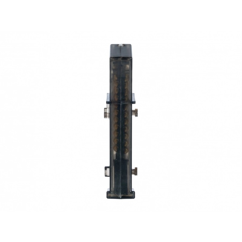 Zapasowy magazynek do repliki karabinka Heckler&Koch G36Co pojemności 48 kulek 6 mm. Magazynek jest kompatybilny wyłącznie ze wspomnianą repliką. Jest to typ magazynka Mid-Cap o średniej pojemności. Model jest wykonany z transparentnego tworzywa sztucznego, dzięki czemu jego wygląd jest wręczidentyczny jak w palnym pierwowzorze. Wewnątrz znajduje się imitacja ostrej amunicji.