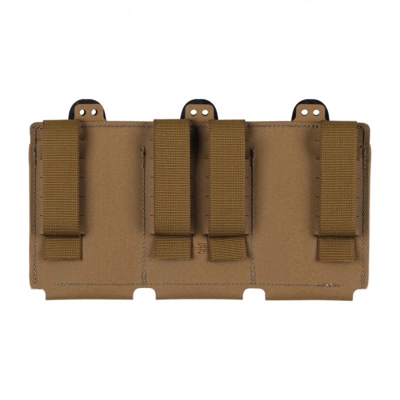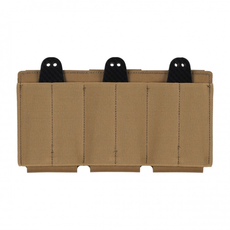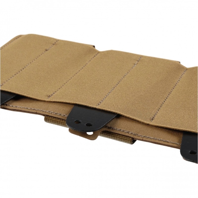Neptune Spear FlatMag Triple AR15 w kolorze Coyote Brown to ładownica wykonana z elastycznej taśmy złączonej płaskim szwem. Przeznaczona jest do przenoszenia magazynków kompatybilnych z platformami AR-15, AK, AUG. Dzięki zastosowaniu płaskiego szwu, ma bardzo niewielką grubość - rzędu kilku milimetrów. Duża rozciągliwość zapewnia odpowiednią retencję i chroni magazynek przed samoistnym wysunięciem. Przednia część ładownicy jest dodatkowo usztywniona. Do ładownicy nie pasują szersze magazynki od amunicji 7,62x51 (SR-25/AR-10).