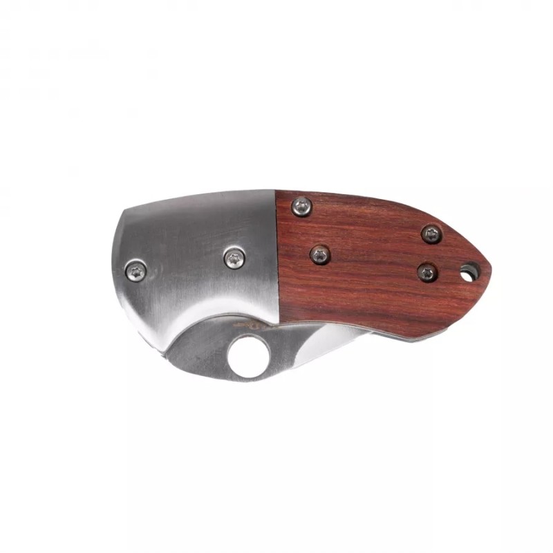 Klinga ma wyprowadzony szlif wklęsły oraz mocny sztych, dzięki czemu zapewnia płynne cięcie oraz wysoką penetrację. Otwór w głowni umożliwia szybkie rozłożenie ostrza jedną ręką, stanowiąc wygodne rozwiązanie zarówno dla osób prawo i leworęcznych. Po rozłożeniu klinga blokowana jest za pomocą systemu liner-lock sprawdzonego mechanizmu o wysokiej odporności mechanicznej, a także łatwego i wygodnego w użytkowaniu. Funkcję blokady pełni stalowa listwa szkieletu, która po otwarciu głowni klinuje ją od dołu. W konstrukcji noża dużą rolę odgrywa rękojeść, od niej bowiem zależy komfort oraz bezpieczeństwo użytkowania. Rękojeść noża składa się z metalowych wzmocnień (bolstery) oraz drewnianych okładzin mocowanych do szkieletu za pomocą śrub.