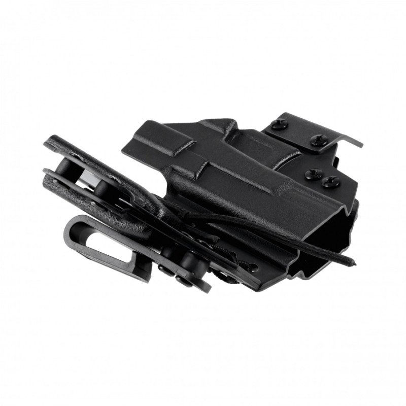 Mocowanie odbywa się za pomocą dwóch regulowanych klipsów z tworzywa o szerokości do 43 mm, które można dostosować do sylwetki oraz noszonego pasa taktycznego.