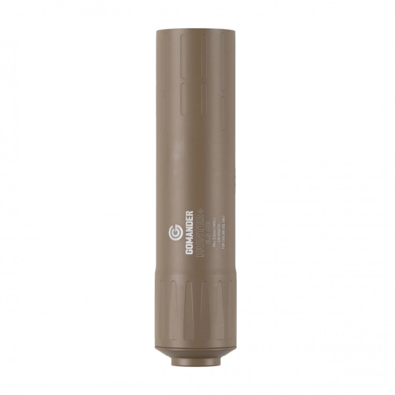 Tłumik do broni myśliwskiej Gomander Hunter 8.0 OB Generacji II to nowoczesne i skuteczne urządzenie wytłumiające dźwięk strzału, mocowanie bezpośrednio na lufie (Over Barrel). Stworzony został specjalnie do współpracy z bronią myśliwską, gdzie ogranicza płoszenie zwierzyny. Tłumik wykonano z lekkiego aluminium lotniczego, co przekłada się na niską masę oraz dobre przewodnictwo cieplne (szybsze schładzanie). Dodatkowe pokrycie powierzchni tłumika powłoką ochronną Cerakote zapewnia zabezpieczenie przed niekorzystnym wpływem kwaśnego środowiska tworzonego przez resztki prochu. Najważniejszym jest w konstrukcji system redukujący cofanie się gazów prochowych z powrotem do komory nabojowej oraz w stronę strzelca. Dzięki budowie jest też łatwy w czyszczeniu. Model jest w kolorze piaskowym i dostosowany jest do gwintu 15x1.