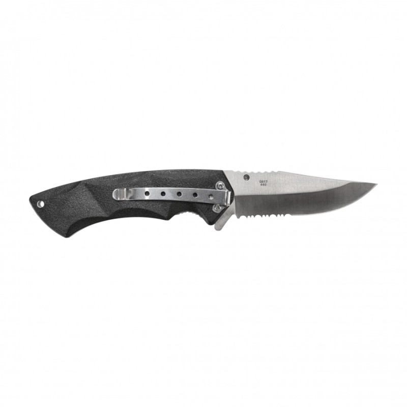 Ganzo G617 to nóż składany, w którym klinga została wyposażona w fliper służący do szybkiego otwarcia ostrza. Dodatkową cechą tego modelu jest częściowo ząbkowana krawędź tnąca. Takie rozwiązanie zwiększa agresywność cięcia.