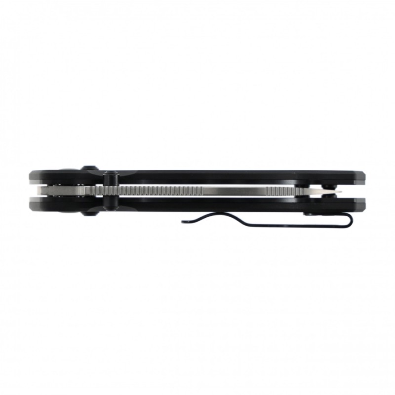 Bezpieczeństwo użytkowania gwarantuje innowacyjna blokada Clutch Lock, oparta na mechanizmie Gemini. Składa się on z dwóch sprężyn w kształcie litery omega oraz pięciu otworów na obu linersach, co daje aż 25 możliwości regulacji siły blokady, dostosowanych do indywidualnych preferencji użytkownika. Łatwy demontaż okładzin pozwala na szybką personalizację mechanizmu. Ergonomiczna rękojeść z aluminium nadaje nożowi elegancki wygląd i zapewnia pewny, stabilny chwyt. Na jej zakończeniu umieszczono otwór na linkę lub brelok, a całość dopełnia dwupozycyjny klips, umożliwiający wygodne noszenie noża w kieszeni lub na ekwipunku.