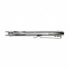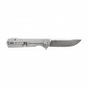 Do rozkładania ostrza jedną ręką służy frezowany flipper, wygodny dla osób prawo i leworęcznych. Poprzeczne frezy odpowiedzialne za stabilne prowadzenia ostrza oraz solidny chwyt, zastosowano także na grzbiecie głowni (rampa kciuka) oraz przekładce okładzin (backspacer).