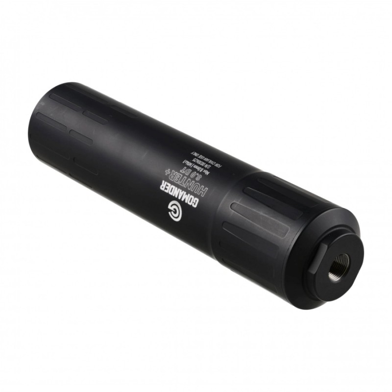 Tłumik do broni myśliwskiej Gomander Hunter 8.0 DT Generacji II to skuteczne urządzenie wytłumiające dźwięk strzału, nakręcane na gwint u wylotu lufy (Direct Thread). Stworzony został specjalnie do współpracy z bronią myśliwską, gdzie ogranicza płoszenie zwierzyny. Tłumik wykonano z lekkiego aluminium lotniczego, co przekłada się na niską masę oraz dobre przewodnictwo cieplne (szybsze schładzanie). Dodatkowe pokrycie powierzchni tłumika powłoką ochronną Cerakote zapewnia zabezpieczenie przed niekorzystnym wpływem kwaśnego środowiska tworzonego przez resztki prochu. Najważniejszym jest w konstrukcji system redukujący powracanie gazów prochowych z powrotem do komory nabojowej oraz w stronę strzelca. Tłumik jest też dzięki temu łatwy w czyszczeniu. Model jest w kolorze czarnym i dostosowany jest do gwintu 14 × 1.