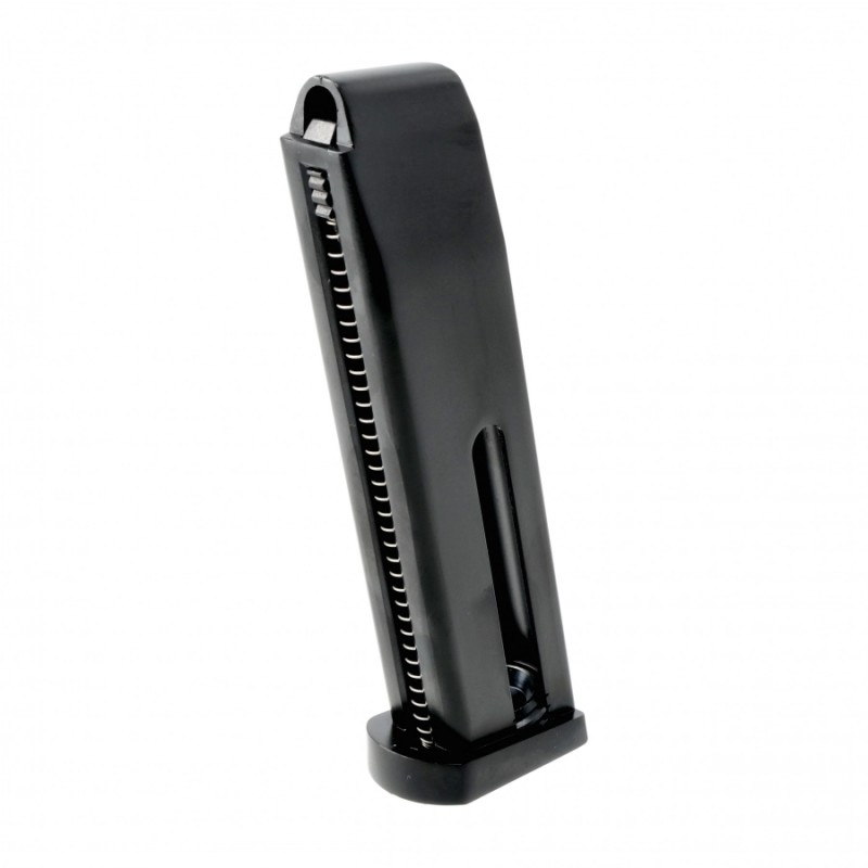 Zapasowy magazynek do repliki pistoletu Beretta 92 FS o pojemności 26 kulek 6 mm. Magazynek jest kompatybilny wyłącznie ze wspomnianą repliką. Wyposażono go w ząbkowaną krawędź donośnika, ułatwiającą jego załadowanie. Model jest wykonany z połączenia polimeru i aluminium.