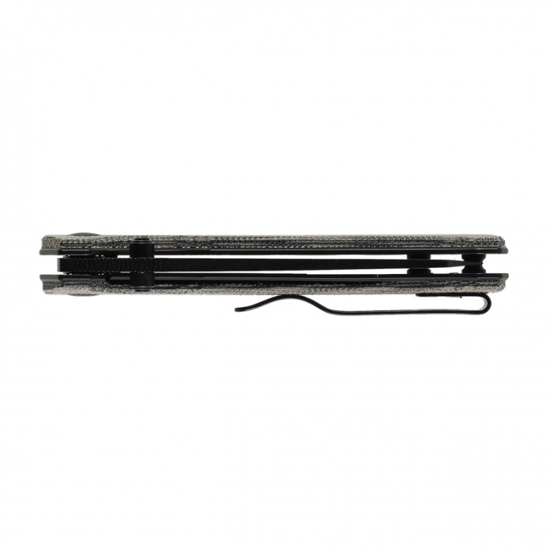 Bezpieczeństwo użytkowania gwarantuje klasyczny mechanizm Liner Lock, skutecznie blokujący ostrze po otwarciu. Stalowe linersy zostały uzupełnione czarnymi okładzinami z Micarty, odpowiednio wyprofilowanymi dla komfortowego i pewnego chwytu. Na zakończeniu rękojeści znajduje się otwór na linkę lub brelok, a całość uzupełnia klips mocujący, umożliwiający wygodne przenoszenie noża w kieszeni lub na ekwipunku.