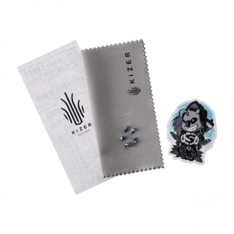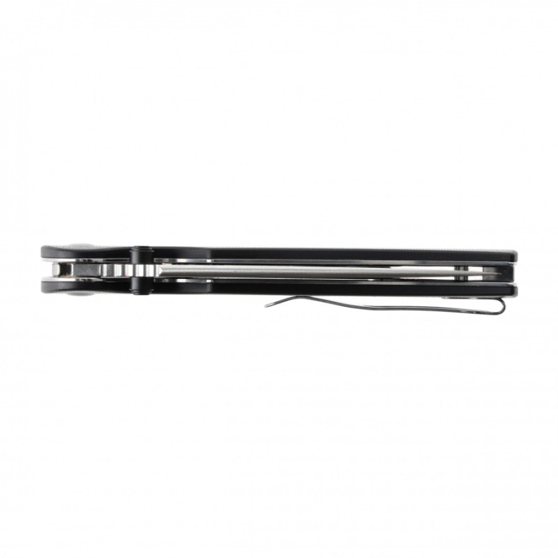 Ergonomiczna rękojeść z wytrzymałego tworzywa G10 zapewnia pewny chwyt i komfortową obsługę. Na jej zakończeniu znajduje się otwór do mocowania linki lub breloka. Całość uzupełnia dwupozycyjny klips, umożliwiający wygodne przenoszenie noża w kieszeni lub na wyposażeniu. W zestawie znajdują się ściereczka z mikrofibry oraz zapasowe śrubki.