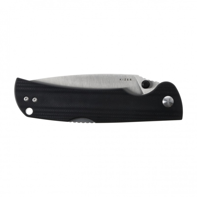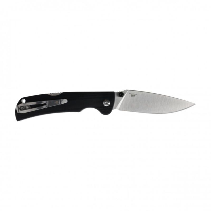 Slicer marki Kizer to klasyczny nóż składany zaprojektowany przez Michala Galovica z myślą o codziennym użytkowaniu. Posiada wszechstronną głownię Drop Point wykonaną ze stali nierdzewnej Nitro-V, cechującej się wysoką twardością, odpornością na korozję oraz długim utrzymaniem ostrości. Satynowe wykończenie ostrza nadaje mu subtelnie matowy efekt, ukrywający drobne ślady użytkowania.