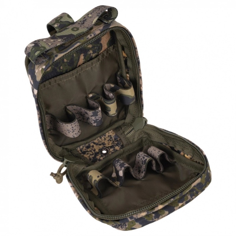 Kieszeń uszyto z cordury w polskim kamuflażu MAPA B, stworzonym z myślą o żołnierzach Wojska Obrony Terytorialnej. Dzięki niemu możesz idealnie wtopić się w tło podczas aktywności w lesie. Kamuflaż ten zapewnia rozmycie sylwetki za pomocą makro i mikro wzorów, które dodatkowo upodabniają wzór do otaczającej Cię roślinności. Doskonale odwzorowuje kolory lasów środkowoeuropejskich w okresie od późnej wiosny do wczesnej jesieni.