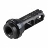 Gomander Raptor TBO 1/2 x 28 UNEF to wielofunkcyjne urządzenie wylotowe, będące doskonałym rozwiązaniem dla broni palnej w kalibrze 5,56 x 45/.223 Remington. Skutecznie zmniejsza ogień wylotowy oraz rozprasza wydostające się za pociskiem gazy prochowe. Wyposażony został w mocowanie kompatybilne z gwintem 1/2-28 UNEF, dzięki czemu doskonale współpracuje z tłumikami dźwięku marki Tactinox. Kompensator jest wykonany w całości z ze stali odpornej na wysokie temperatury i dodatkowo został pokryty czarną powłoką zabezpieczającą.