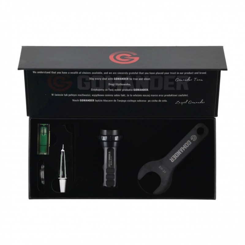 Wraz z urządzeniem wylotowym otrzymasz w zestawie: klucz do nakręcania na lufę, podkładkę zabezpieczającą, dodatkową nakrętkę na gwint oraz ceramiczny smar konserwujący.