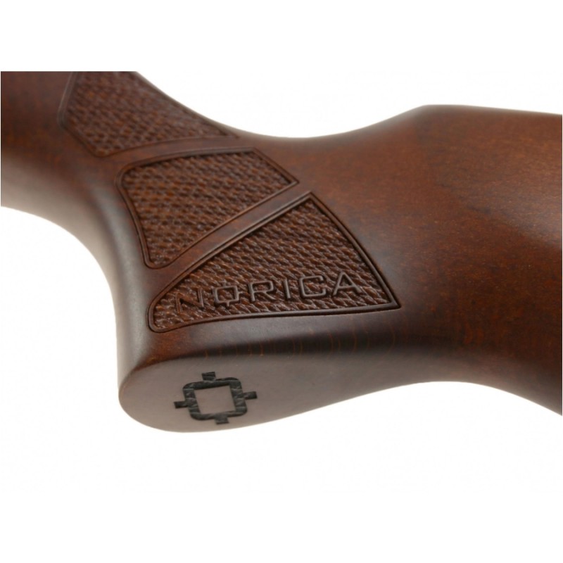 Norica Norica Marvic 2.0 4,5 mm to wysokiej klasy karabinek pneumatyczny, ze stylową osadą z olejowanego drewna bukowego, wyposażony w światłowodowe przyrządy celownicze, automatyczny bezpiecznik oraz regulowany mechanizm spustowy.
