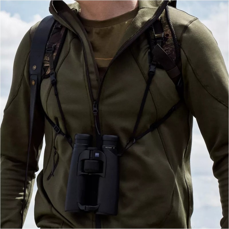 Modułowy system mocowania PALS/MOLLE pozwala na przymocowanie dodatkowych akcesoriów, takich jak ładownice czy narzędzia, a laserowo wycięte punkty montażu na spodzie dodają jeszcze więcej możliwości personalizacji. Dzięki regulowanemu pasowi tylnemu, uprząż zapewnia całodzienny komfort, a płaskie pasy naramienne pozwalają na wygodne noszenie plecaka lub broni. W zestawie znajdują się także mocne klamry oraz regulowane sznurki bino, które stabilizują lornetkę i ułatwiają jej używanie. Uprząż można również przymocować do większości plecaków lub odłączyć dla lżejszego transportu.