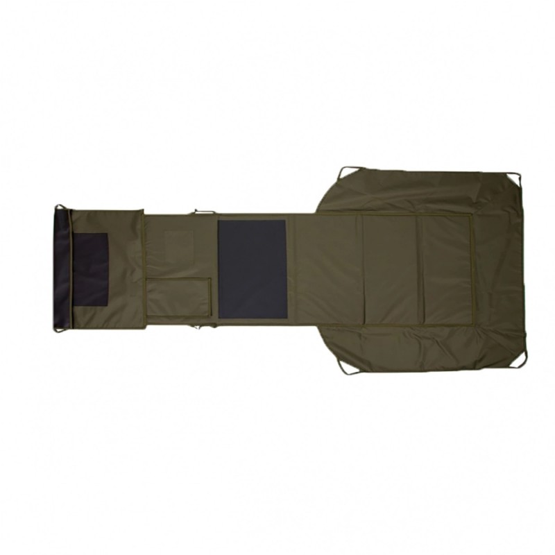 Matę strzelecką Tacti.pl wykonano z wytrzymałej cordury. Spodnią część uszyto z nieczepliwej tkaniny powlekanej. Dodatkowo na matę naszyto gumowaną tkaninę umożliwiającą stabilne ustawienie podstawy dla broni lub oparcie łokci. Po prawej stronie umieszczono zakrywane okienko o wymiarach kartki A4, umożliwiające sporządzanie notatek.