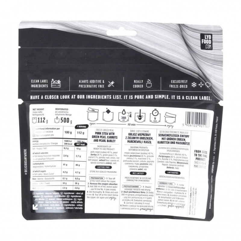LYOFOOD Gulasz wieprzowy z kaszą (500 g) to liofilizowana wersja tradycyjnego dania, które od pokoleń gości na polskich stołach, nieustannie zachwycając wyrazistym smakiem i aromatem.