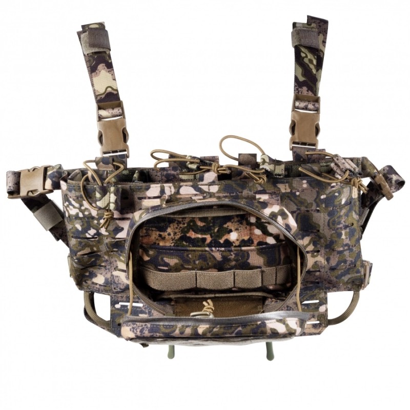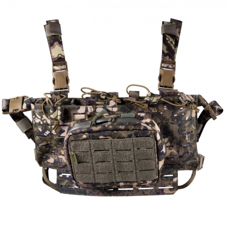 Komfortowy chest rig CL-01 polskiego producenta Maskpol oferuje użytkownikowi modułową platformę do przenoszenia magazynków oraz innych niezbędnych elementów oporządzenia. Oparta o wycinany laserowo laminat Cordura konstrukcja gwarantuje ekstremalną wytrzymałość oraz odporność na trudne warunki atmosferyczne. Zintegrowane ładownice umożliwiają przenoszenie czterech magazynków STANAG lub AK, natomiast zewnętrzny panel MOLLE Laser Cut umożliwia dowolną konfigurację kieszeni i ładownic w tym standardzie. W zestawie otrzymujemy również kieszeń cargo z regulowanym zakresem otwarcia dla wygodnego manipulowania drobniejszymi akcesoriami.