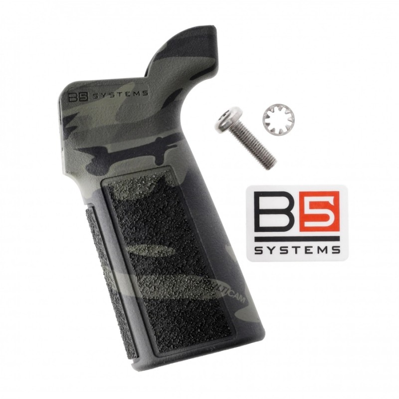Chwyt pistoletowy P-Grip B5 Systems ma mniejszy kąt nachylenia względem komory spustowej, co zapewnia dodatkową odległość dłoni od ciała strzelca, wpływa na lepszą kontrolę i poprawę stabilizacji broni. Chwyt o takim nachyleniu zmniejsza napięcia nadgarstka podczas strzelania, dlatego przez wielu strzelców uznawany jest za wygodniejszy od standardowego fabrycznego chwytu. Funkcjonalność chwytu można zwiększyć, kupując dodatkowo uchwyt na baterię B5.