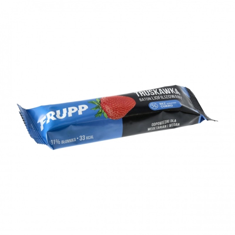 Baton liofilizowany na bazie truskawek, owoców o wysokiej zawartości witaminy C, A, B1, B2 oraz PP. Truskawki słyną ze swoich właściwości leczniczych: przeciwdziałają powstawaniu nowotworów, ułatwiają przemianę materii, ich spożywanie jest zalecane przy schodzeniach układu moczowego i żółciowego, wzmacniają także zęby i kości.