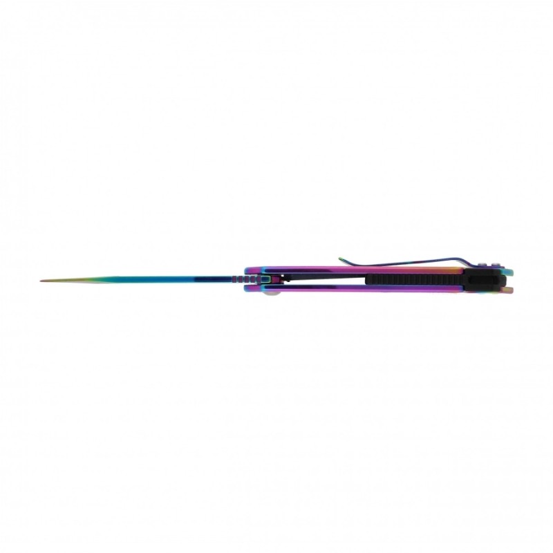 Wygodna, stalowa rękojeść dobrze leży w dłoni, a klips Deep Carry z tym samym efektownym wykończeniem Rainbow PVD pozwala na wygodne i dyskretne noszenie noża w kieszeni – zarówno przez osoby prawo-, jak i leworęczne (klips jest odwracalny). Całość dopełnia otwór na linkę, który pozwala na dodatkowe zabezpieczenie lub personalizację.