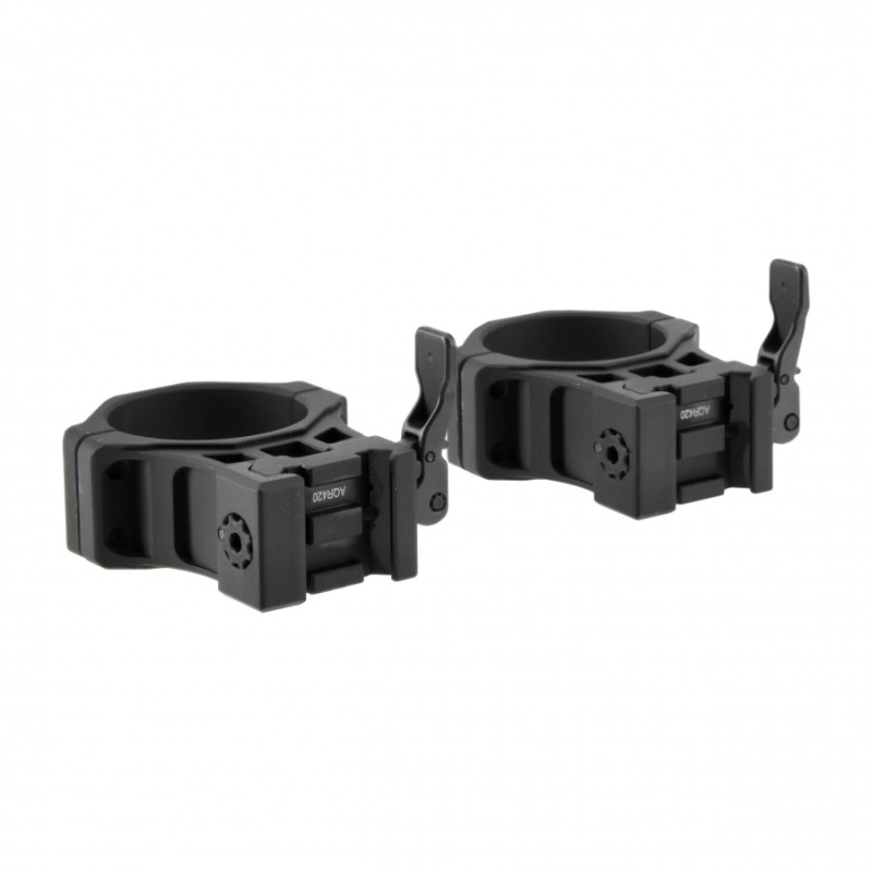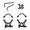Pierścienie mocujące wykonano metodą CNC z jednego kawałka aluminium. Ze względów estetycznych wszystkie krawędzie i rogi wygładzono. Producent zastosował śruby blokujące Torx oraz prostokątny kołek ryglujący zapewniający utrzymywanie zera. Przewidział również możliwość wygodnej regulacji napięcia obejmy bez użycia narzędzi. Dźwignia QR ułatwia montaż i demontaż obejm.