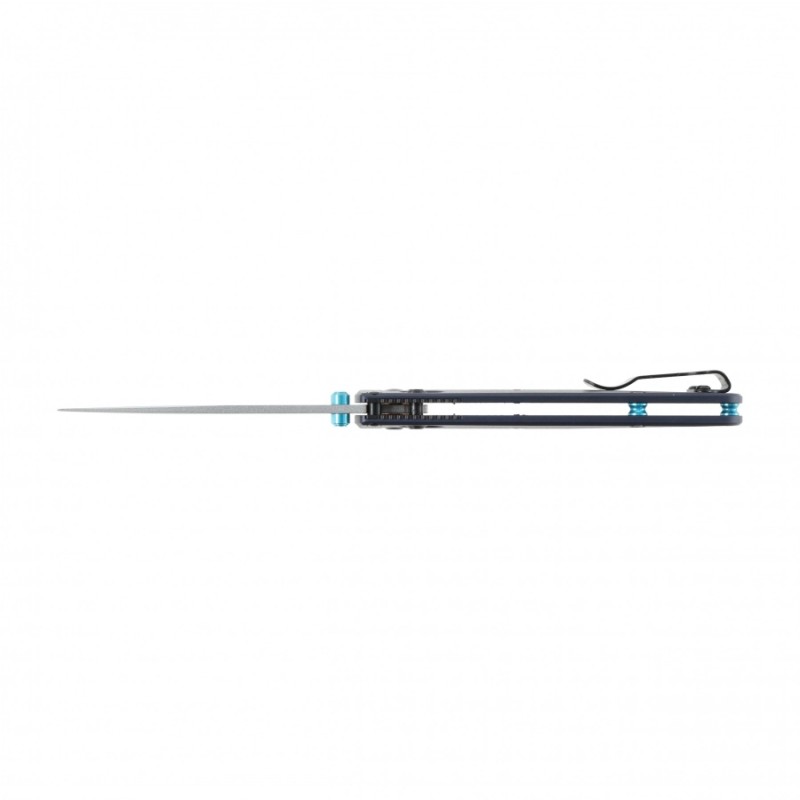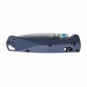Ostrze można wygodnie rozłożyć jedną ręką, dzięki zastosowaniu dwustronnego kołka, umożliwiając tym samym komfortową obsługę noża osobom prawo i leworęcznym. W nożu znajdziemy subtelne zdobienia w postaci anodowanego na niebiesko kołka oraz wkładki dystansującej w tej samej kolorystyce. Blokada głowni to oczywiście Axis-lock, flagowy mechanizm marki Benchmade, ceniony za ogromną odporność na obciążenia, niewrażliwość na zabrudzenie oraz łatwość użytkowania.
