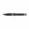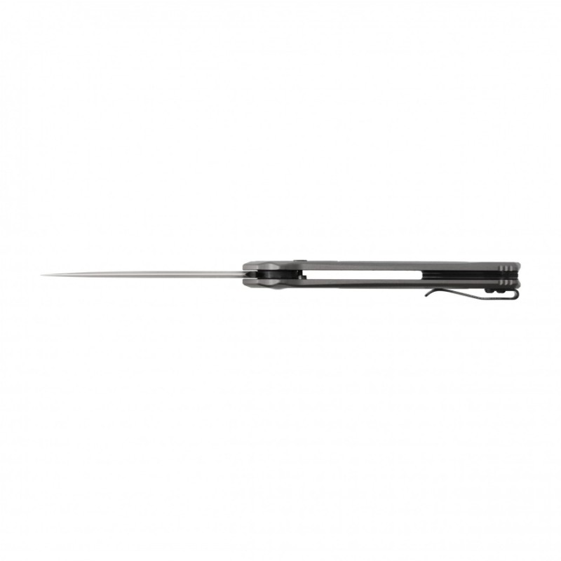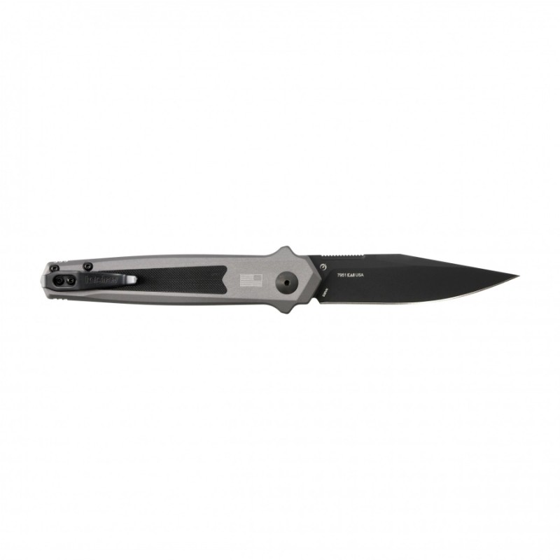 Smukła klinga o symetrycznym profilu clip-point ma czarne matowe wykończenie Cerakote, które podkreśla taktyczny styl noża i efektownie kontrastuje z szarą kolorystykę okładzin. Dzięki zastosowaniu ostrego sztychu, wklęsłego szlifu oraz krawędzi tnącej o łagodnie zaokrąglonej linii, nóż z łatwością penetruje oraz ma wspaniałe właściwości tnące. Grubość klingi w najszerszym miejscu wynosi 3 mm, co stanowi kompromis pomiędzy wytrzymałością i funkcjonalnością noża w codziennej pracy.