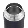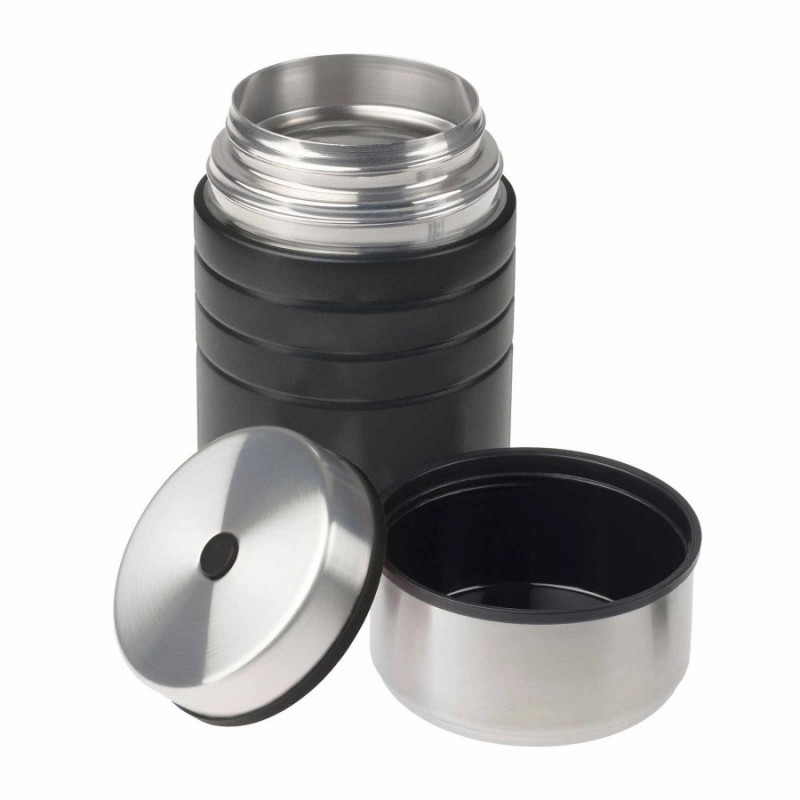 Termos obiadowy wyposażony jest w szczelne zamknięcie z przyciskiem, które pozwala na wyrównanie ciśnienia wewnątrz — zabezpiecza to przed rozlewaniem oraz ułatwia otwieranie. Dołączone wieczko można wykorzystać jako miskę.