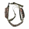 Stabilność konstrukcji zapewnia mocna zatrzaskowa klamra, a regulowane szelki pozwalają na równomierne rozłożenie ciężaru amunicji, zwiększając komfort użytkowania. Estetyki dodaje wyszyty emblemat myśliwski, który podkreśla charakter produktu i doskonale wpisuje się w łowiecką stylistykę.