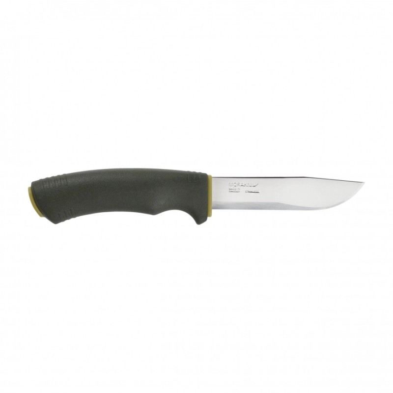 Głownie noża o profilu clip point wykonano ze stali nierdzewnej Sandvik 12C27 dzięki czemu, nóż długo będzie trzymał ostrość oraz będzie łatwy w podostrzaniu. Ergonomiczna rękojeść noża została pokryta gumą, dzięki czemu nóż pewnie leży w dłoni nawet w niekorzystnych, wilgotnych warunkach użytkowania. Plastikowa pochewka dostarczona z nożem posiada klips dzięki, czemu możemy nóż przypiąć zarówno do paska, jak i do swojego oporządzenia.