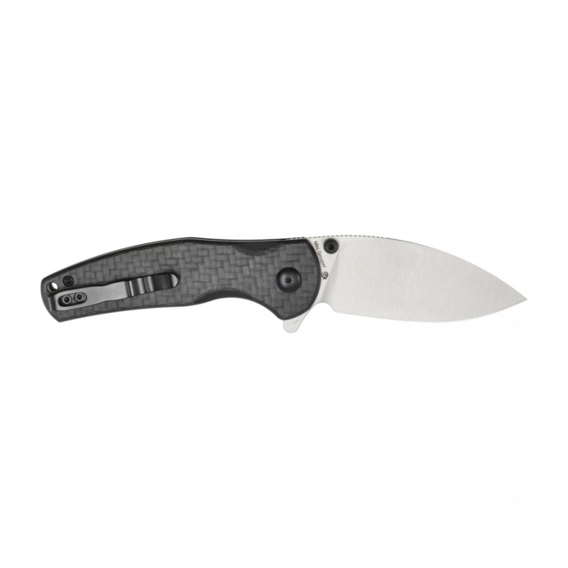 Kizer Nice Mini Grouper ma okładziny z lekkiego i wytrzymałego włókna węglowego, które poza efektownym wyglądem, zapewnia minimalny ciężar noża — zaledwie 111,3 g. Delikatnie profilowane okładziny o antypoślizgowym teksturowaniu, zapewniają pewny i wygodny chwyt noża.