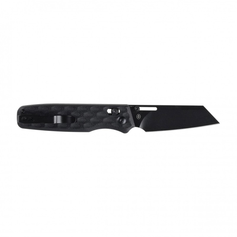 Satynową klingę w folderze Kizer Task o profilu Sheepsfoot wykonano z twardej stali narzędziowej 154CM, hartowanej do twardości 58-61 HRC. 154CM to stal nierdzewna o wysokiej zawartości węgla wzbogacona dodatkiem molibdenu, dlatego można ją określić jako ulepszoną wersję 440C.