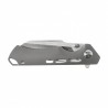 Ostrze o długości 77,4 mm wykonano z renomowanej stali S35VN – materiału, który zapewnia doskonałą odporność na korozję, wysoką twardość (60-61 HRC) oraz imponującą trwałość krawędzi tnącej. Satynowe wykończenie i płaski szlif ostrza typu Sheepsfoot gwarantują perfekcyjne właściwości tnące i precyzję przy codziennych zadaniach – od przecinania kartonów, przez pracę w terenie, aż po wymagające zadania outdoorowe.