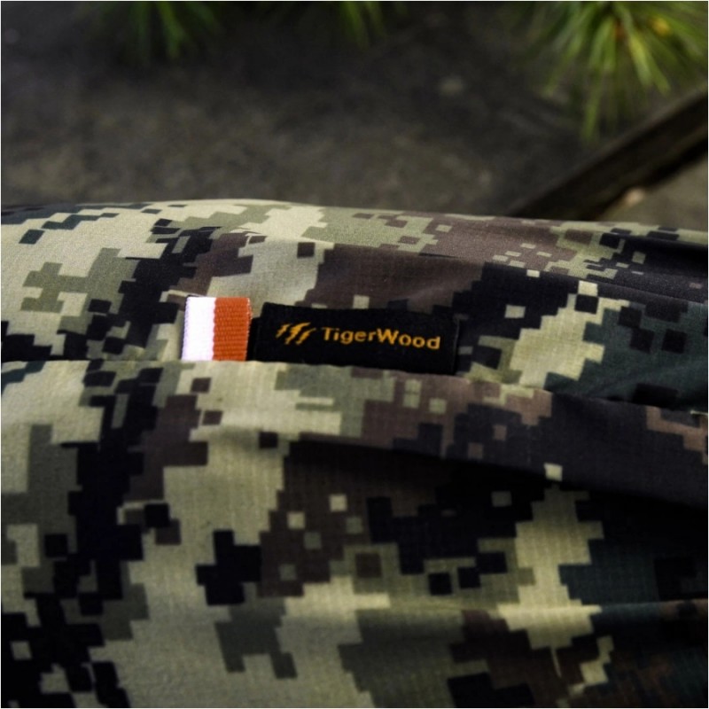 Hamak TigerWood Ważka V2 wykorzystuje wzmocnioną siatką ripstop tkaninę nylonową, gwarantującą te same korzyści wsparte zwiększoną odpornością na uszkodzenia. Materiał charakteryzuje się wysoką odpornością na rozciąganie, dzięki czemu bez problemu utrzyma ciężar do 275 kg. Charakteryzuje się przy tym niską masą oraz dobrą oddychalnością, dzięki czemu będzie komfortowy zarówno w transporcie jak i podczas użytkowania. Umieszczona na boku hamaka kieszonka umożliwi przechowanie pod ręką kluczowych akcesoriów. Zintegrowana moskitiera została natomiast wyposażona w cięciwy, które pozwalają na jej odpowiednie napięcie dla komfortu użytkownika.