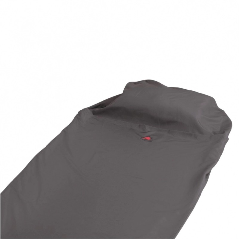 Wkładka do śpiwora Robens Mountain Liner Mummy uszyto z miękkiej mikrofibry 230T o gęstości 50 denierów. Jest to przyjemny w dotyku materiał o właściwościach szybkoschnących, który zapewnia także wydajne odprowadzanie nadmiar wilgoci wydzielanego przez ludzkie ciało. Szczotkowana struktura materiału powoduje, że wkładka nie przemieszcza się w śpiworze. Kolejną zaletą wkładki jest kieszeń na poduszkę, która może także pełnić funkcję kaptura chroniącego przed wiatrem i chłodem. Kształt wkładki jest przystosowany do śpiworów typu mumia. Poza podniesieniem komfortu termicznego wkładka zmniejsza ryzyko zabrudzenie wnętrza śpiwora.