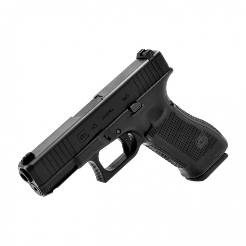 Glock 45 6 mm to licencjonowana replika ASG austriackiego pistoletu samopowtarzalnego, opartego o nowoczesny polimerowy szkielet. Model ten cechuje się wiernym odwzorowaniem palnego pierwowzoru, metalowym zamkiem z realistycznym systemem Blow-Back, zasilaniem na Green Gas oraz wysoką ergonomią. Prezentowana wersja jest pełnowymiarowym pistoletem w kolorze czarnym.