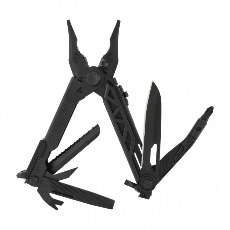Gerber Center Drive to pełnowymiarowy multitool, którego konstrukcję oparto na stalowym szkielecie. Narzędzia i ramiona mają matowo czarne wykończenie, nadające multitoolowi militarnego charakteru.