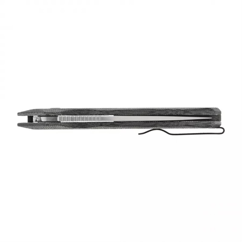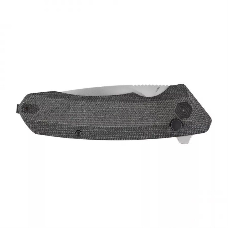Folder Invictus ma okładziny rękojeści wykonane z szarej Mircarty – kompozytu powstałego z połączenia prasowanego pod ciśnieniem płótna z syntetyczną żywicą. Chropowata faktura i gładkie krawędzie okładzin sprawiają, że nóż dobrze leży w dłoni i zapewnia bezpieczny chwyt w trakcie pracy.