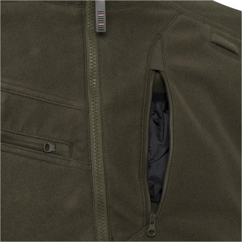 Funkcjonalne otwory wentylacyjne pod pachami, zapinane na suwak, zapobiegają przegrzaniu i poprawiają cyrkulację powietrza. Kurtka dostępna jest także w wersji z wysokowidzialnym kamuflażem Realtree AP HD, który spełnia normę EN 17353:2020, zapewniając lepszą widoczność i bezpieczeństwo w terenie. Model doskonale komponuje się ze spodniami 4-Way Stretch EVO lub Bymark, tworząc kompletny zestaw outdoorowy.