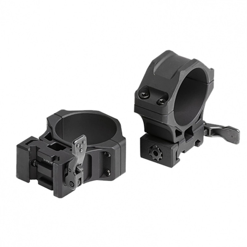 Pierścienie mocujące wykonano metodą CNC z jednego kawałka aluminium. Ze względów estetycznych wszystkie krawędzie i rogi wygładzono. Producent zastosował śruby blokujące Torx oraz prostokątny kołek ryglujący zapewniający utrzymywanie zera. Przewidział również możliwość wygodnej regulacji napięcia obejmy bez użycia narzędzi. Dźwignia QR ułatwia montaż i demontaż obejm.