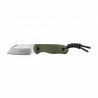 W nożu zastosowano rękojeść z G10. Jest to wytrzymały i lekki kompozyt wykonany z laminatu szklano-epoksydowego. Charakteryzuje się wysoką odpornością na wilgoć, chemikalia i ekstremalne temperatury. Dodatkowo teksturowana powierzchnia zapewnia pewny chwyt, co zwiększa kontrolę nad nożem podczas użytkowania.