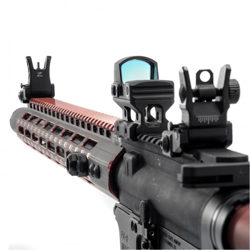 Ten montaż zaprojektowano tak, aby zapewniał idealne ustawienie punktu celowania kolimatora na wysokości linii celowniczej mechanicznych przyrządów celowniczych w karabinkach AR15. Dzięki temu użytkownik uzyskuje idealną synchronizację pomiędzy kolimatorem a standardowymi przyrządami optycznymi.