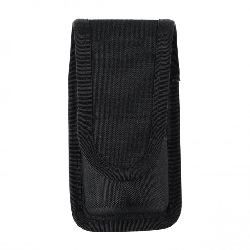 Etui wykonano z trwałego nylonu balistycznego oraz wzmocniono pianką poliuretanową, która chroni przenoszony gaz przed uszkodzeniem mechanicznym oraz wysokimi temperaturami. Co ważne, śliskie wnętrza pokrowca umożliwia błyskawiczne dobycie gazu, bez efektu klinowania i blokowania się pojemnika, co jest szczególnie ważne w sytuacji stresowej. Klapka zapobiegająca wypadnięciu gazu, ma perforowane miejsca zgięcia oraz mocne zapięcie na rzep. Szeroka tylna szlufka (70 mm) pozwalana na wpięcie pokrowca na większości pasów cywilnych i taktycznych. Newralgiczne krawędzie obszyto lamówką zapobiegającą strzępieniu się materiału.