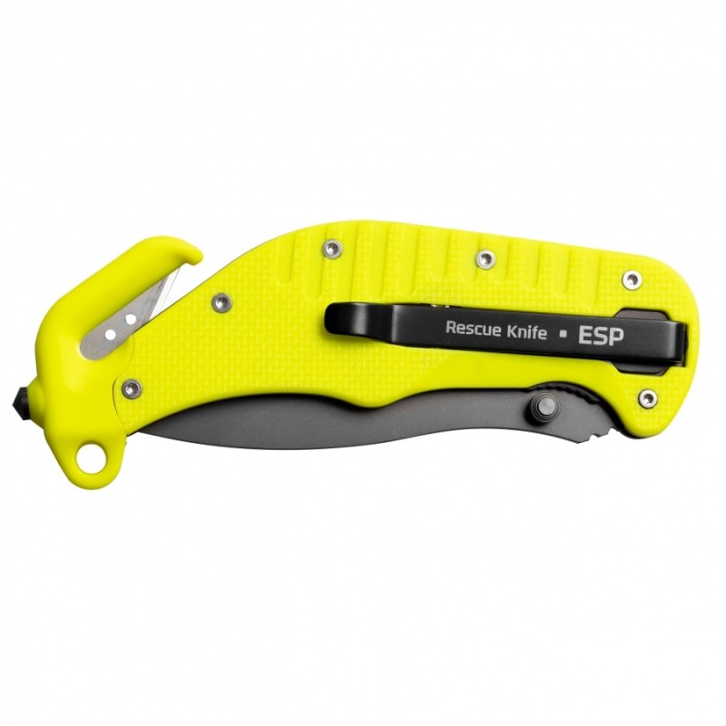 ESP to nóż składany o unikalnej konstrukcji, łączącej cechy standardowego noża, przecinaka do kajdanek tekstylnych oraz narzędzia do awaryjnego rozbijania szyb.