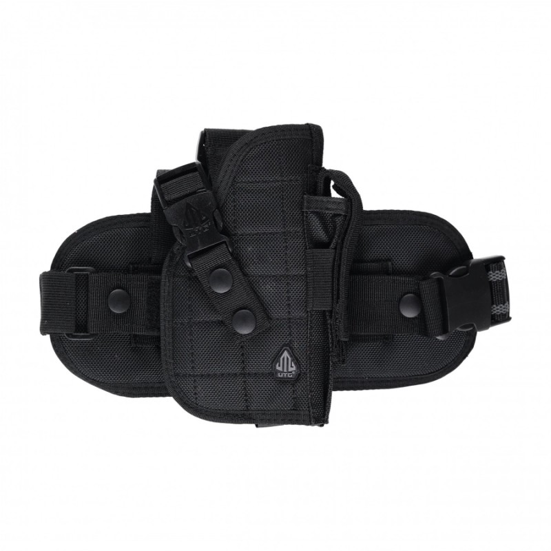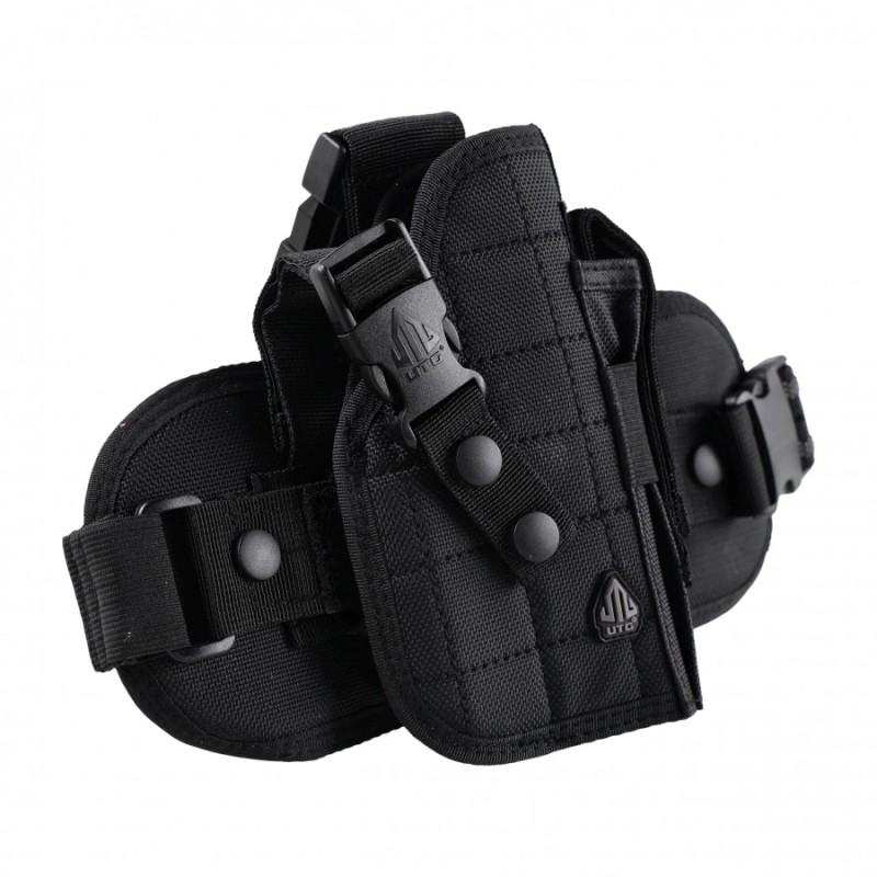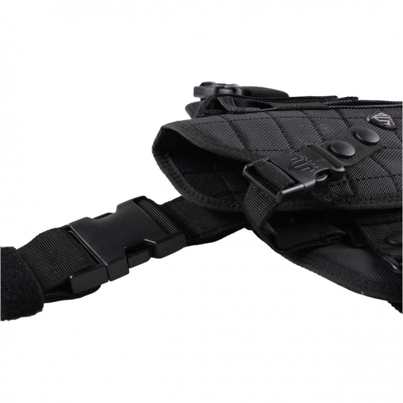 Kabura udowa Lepaers UTG Special OPS Tactical Thigh Holster, która łączy w sobie doskonałą funkcjonalność i wyjątkową wytrzymałość. Wykonana z wysokiej jakości poliestru, kabura charakteryzuje się odpornością na rozdarcia oraz blaknięcie, co czyni ją idealnym wyborem dla osób aktywnych, poszukujących pewnego i komfortowego miejsca na przechowywanie swojej broni. Wersja dla praworęcznych użytkowników.