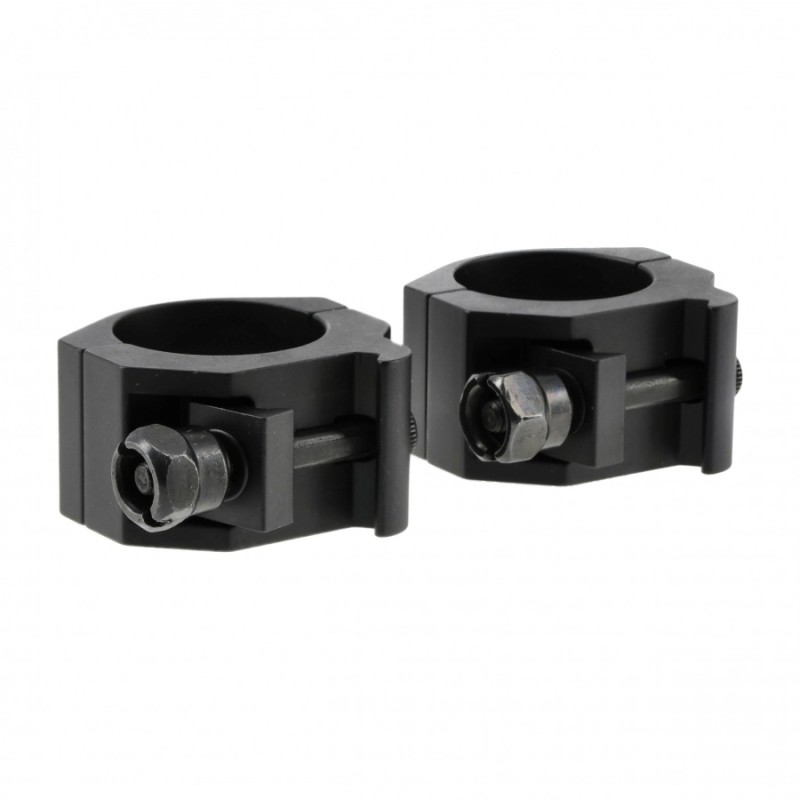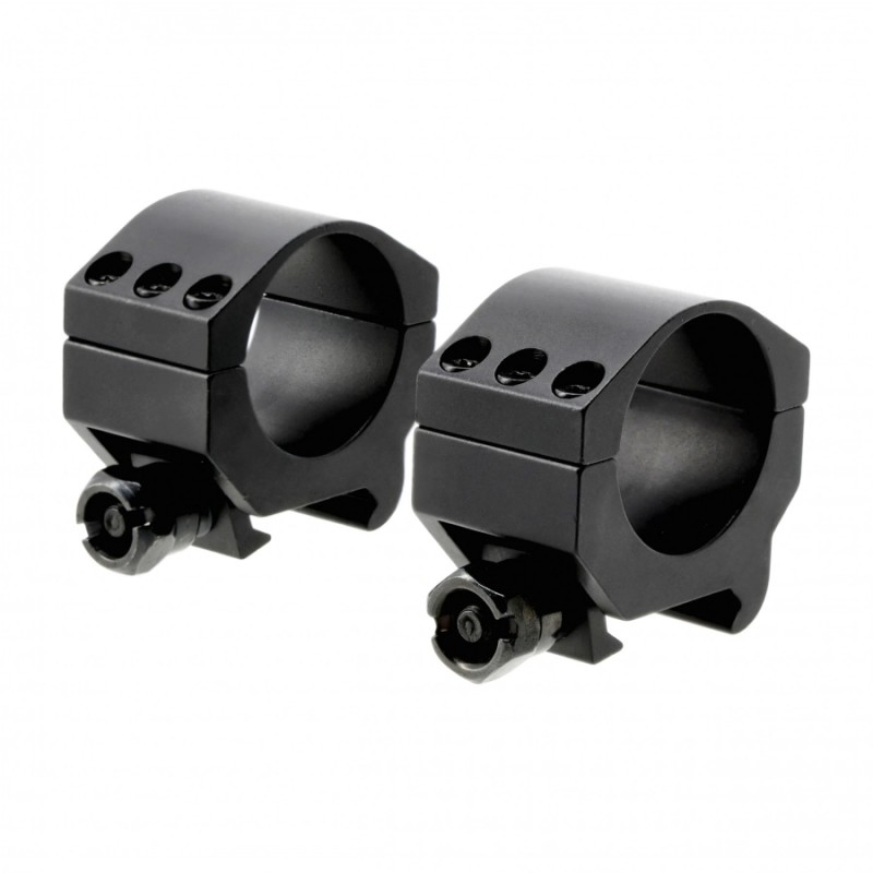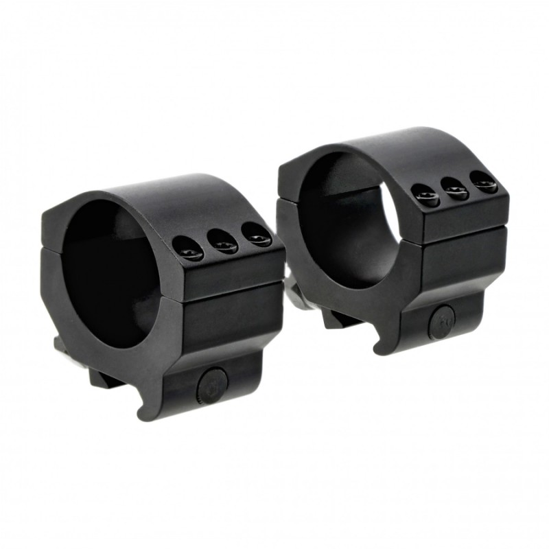 Pierścienie wykonano z anodowanego aluminium. Elementy są lekkie, dlatego nie zwiększą odczuwalnie masy karabinka. Precyzyjna konstrukcja oraz sześć śrub mocujących gwarantują pełną osiowość montażu lunety, stabilne utrzymanie zera oraz odporność na odrzut broni.