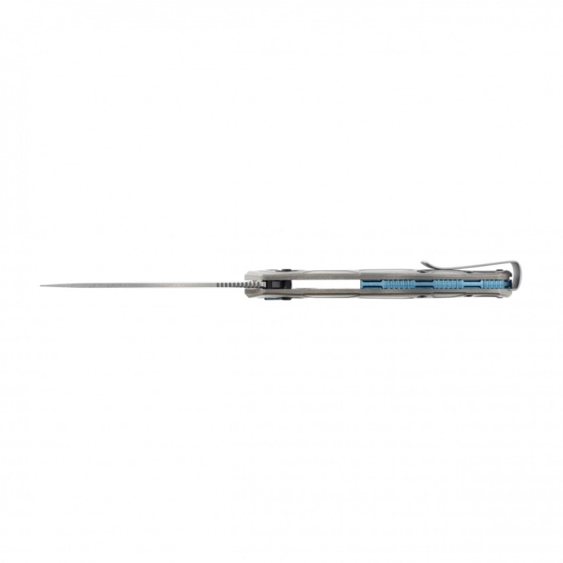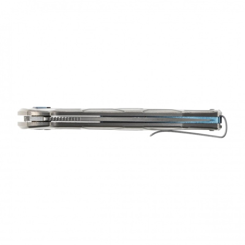 Chwyt w nożu otrzymał lekkie i tytanowe okładziny, pokryte wyraźnym i nieco futurystycznym teksturowaniem. Zastosowano tu rownież klips typu extra-deep carry, który umożliwia dyskretne przenoszenie noża poniżej linii kieszeni.
