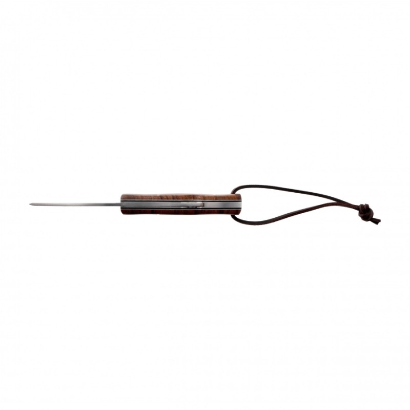 Jego wytrzymała stal 14C28N, klasyczny mechanizm blokady i ergonomiczna rękojeść z orzechowego drewna czynią go niezawodnym narzędziem w każdych warunkach.