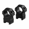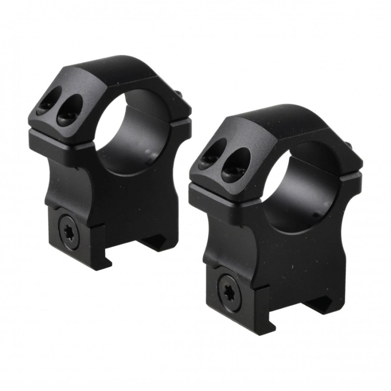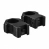 Obie połówki pierścieni są wyfrezowane z jednego kawałka aluminium 6061-T6, co eliminuje niedokładności montażu i zapewnia sztywność bez naprężeń. Taka konstrukcja gwarantuje jednolite dopasowanie do powierzchni lunety, bez ryzyka odkształceń lub punktowego nacisku. Całość została pokryta matową, twardą anodą w kolorze czarnym, zapewniającą odporność na korozję i zadrapania.